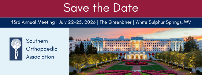 As the current president of the Southern Orthopaedic Association, I am delighted to announce that the SOA will be returning to the Greenbrier Resort in White Sulphur Springs, WV, for our 43rd Annual Meeting on July 22-25, 2026.